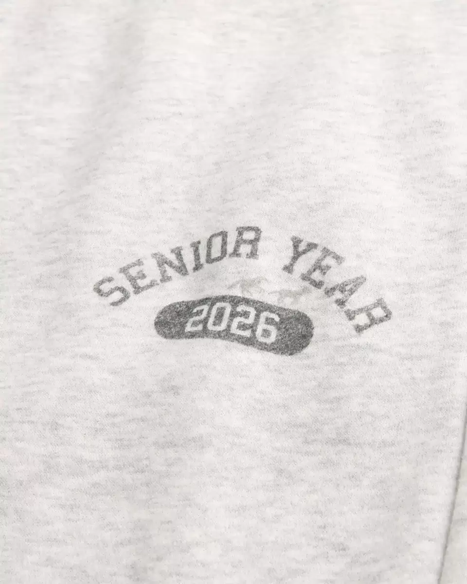 Supermiękkie spodnie dresowe z polaru z nadrukiem na rok szkolny 2026. Ściągacz w pasie, kieszenie, prawa kieszeń na zamek, bardzo luźne nogawki. Importowane.
