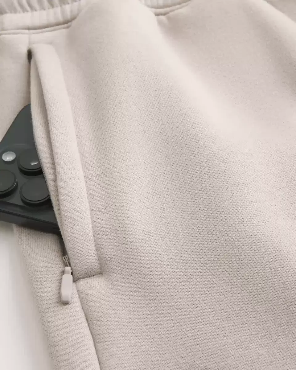 Wygodne spodnie dresowe z polaru z bardzo luźnymi nogawkami i ściągaczem w pasie. Kieszenie, prawa kieszeń zapinana na zamek, haftowane logo. Importowane.