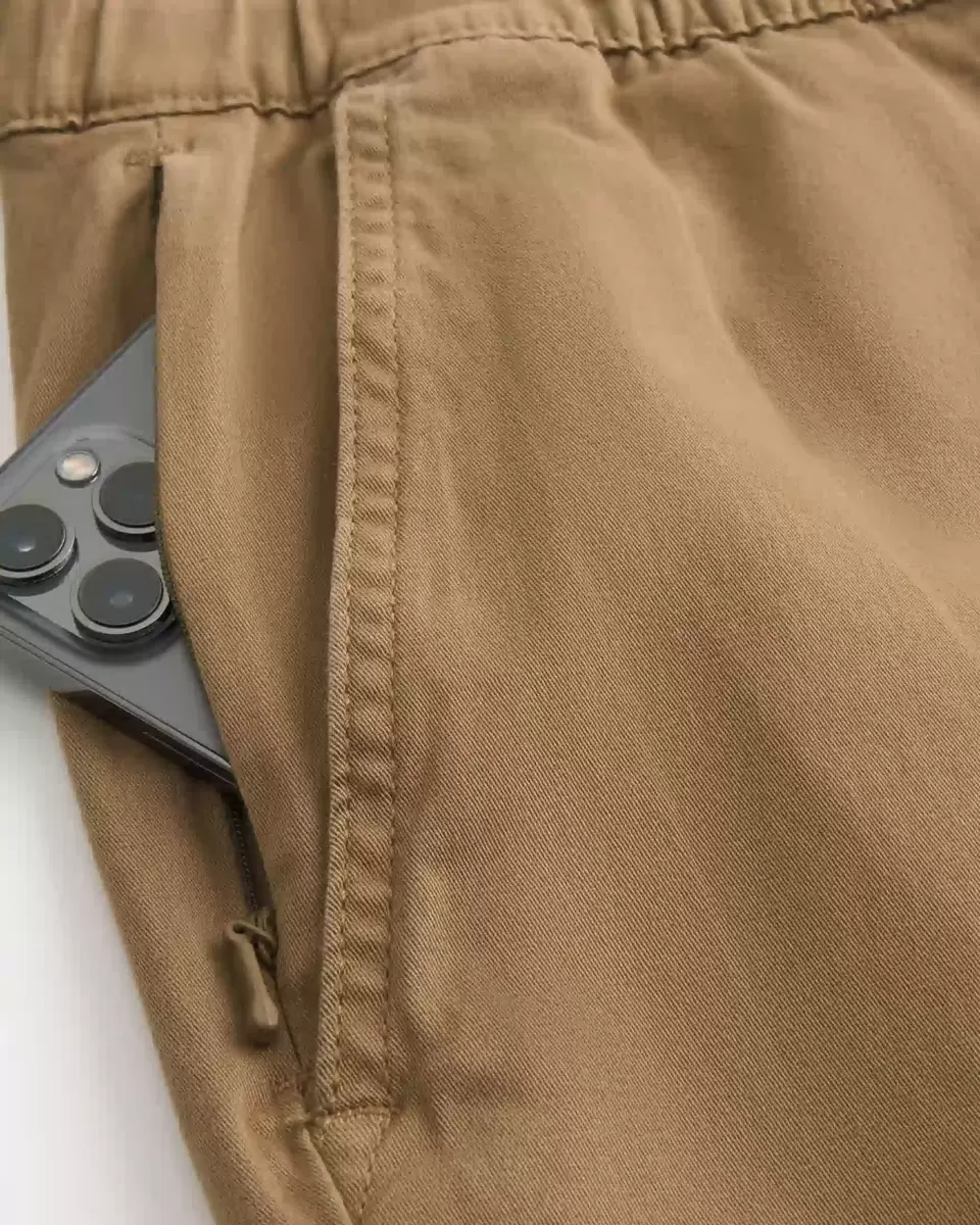 Ultrawygodne spodnie dresowe z tkaniny Advanced Stretch twill. Ściągacz w pasie, kieszenie, prawa kieszeń na zamek błyskawiczny, ściągacze u dołu, luźna nogawka. Produkt importowany.