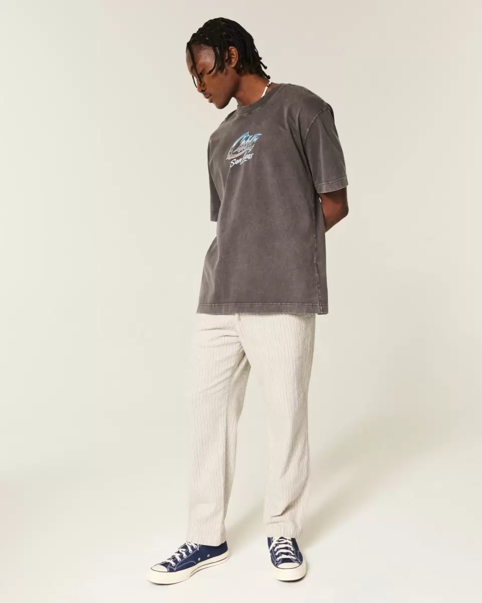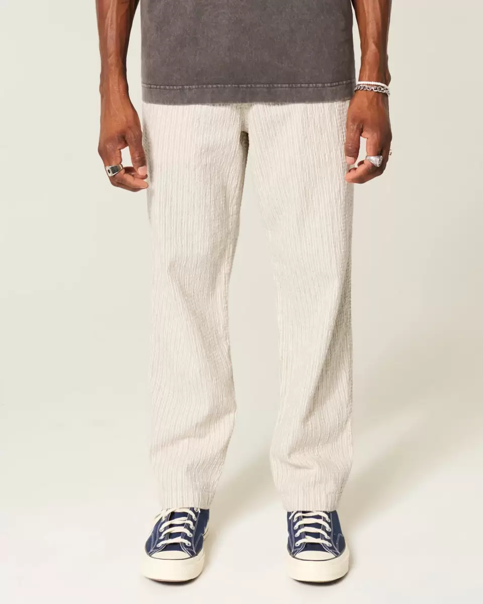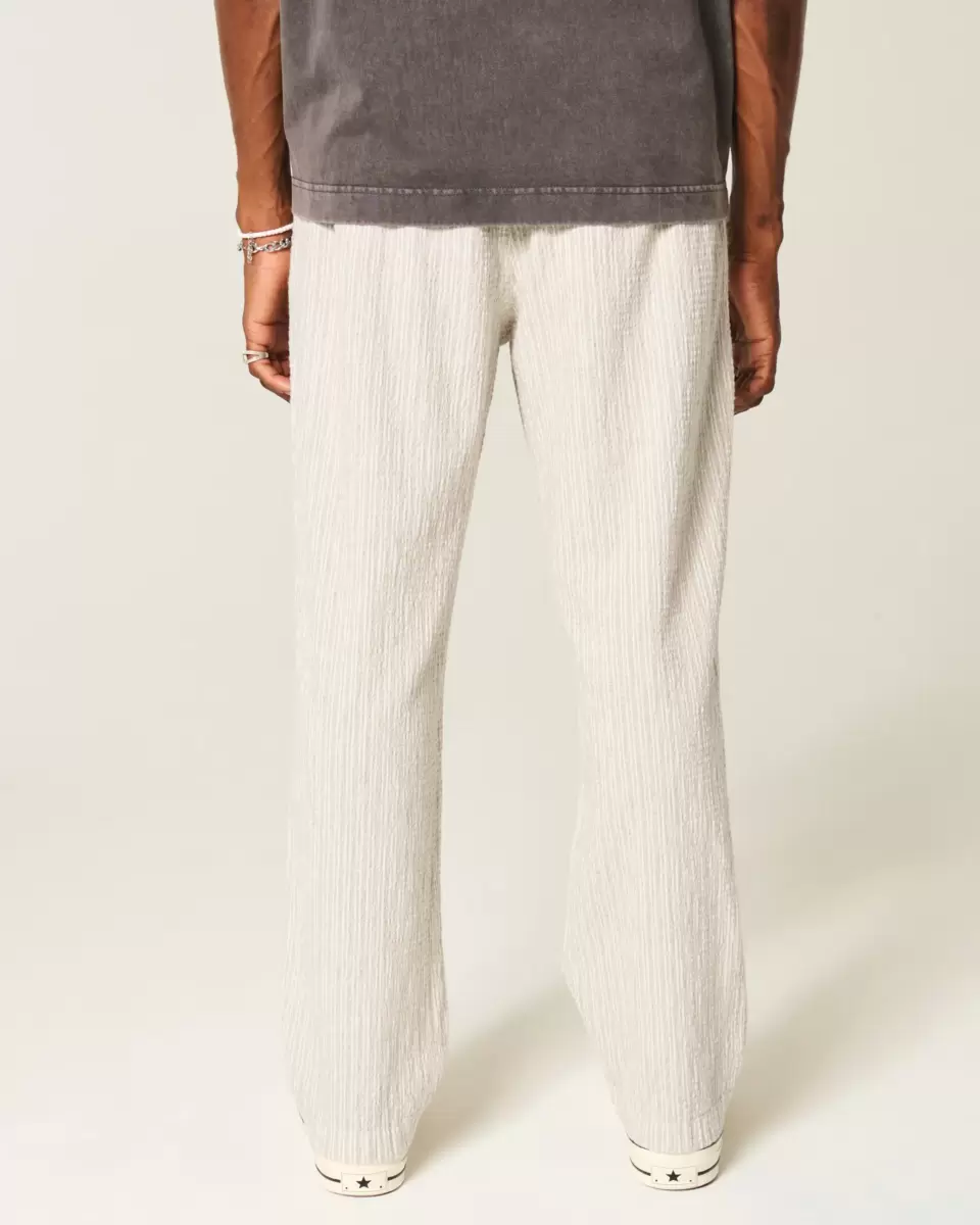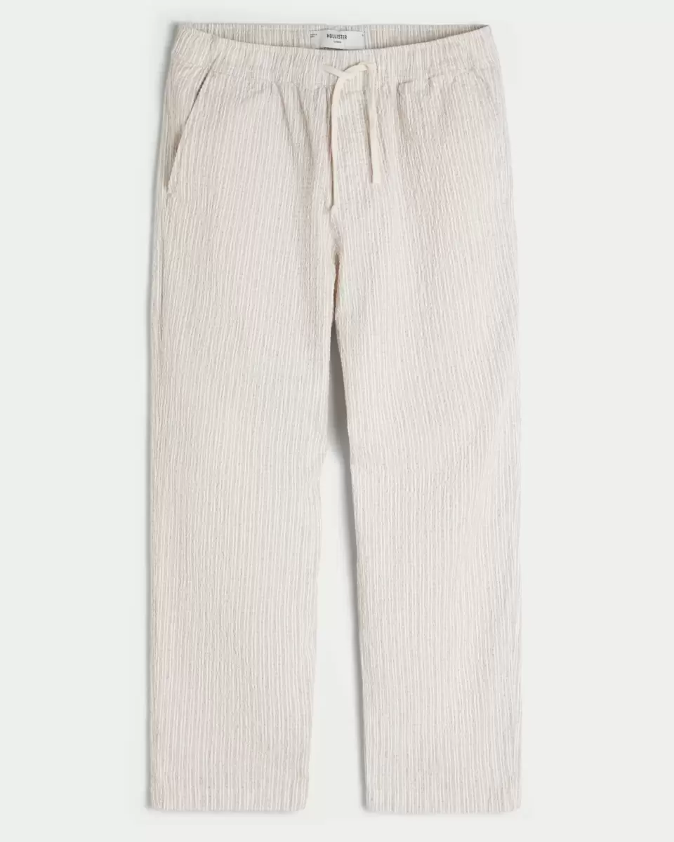 Wygodne spodnie z miękkiej tkaniny seersucker, z luźnymi nogawkami i ściągaczem w pasie. Kieszenie. Produkt importowany.