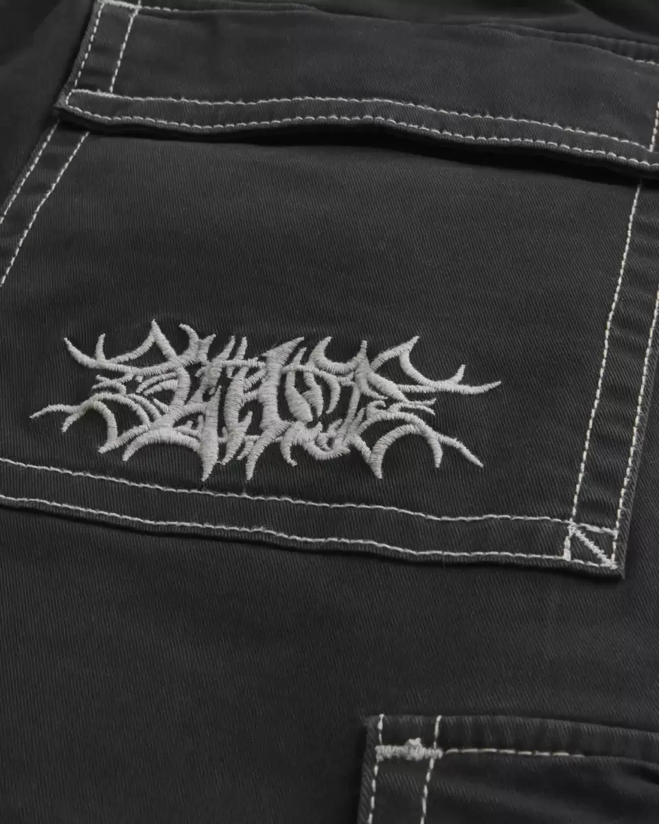 Wygodne spodnie z twillu z luźnymi nogawkami i bocznymi kieszeniami cargo. Ściągacz w pasie, kontrastowe przeszycia. Produkt importowany.