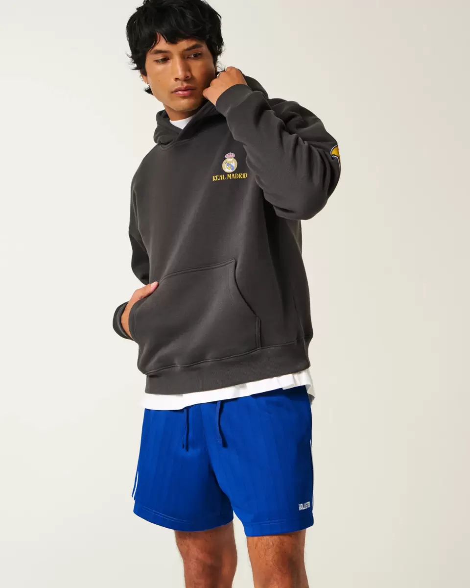 Supermiękkie, dzianinowe spodenki piłkarskie ze ściągaczem w pasie i haftowanym logo na lewym brzegu. Kieszenie, długość do połowy uda, haftowana ikona na prawym brzegu. Importowane.
