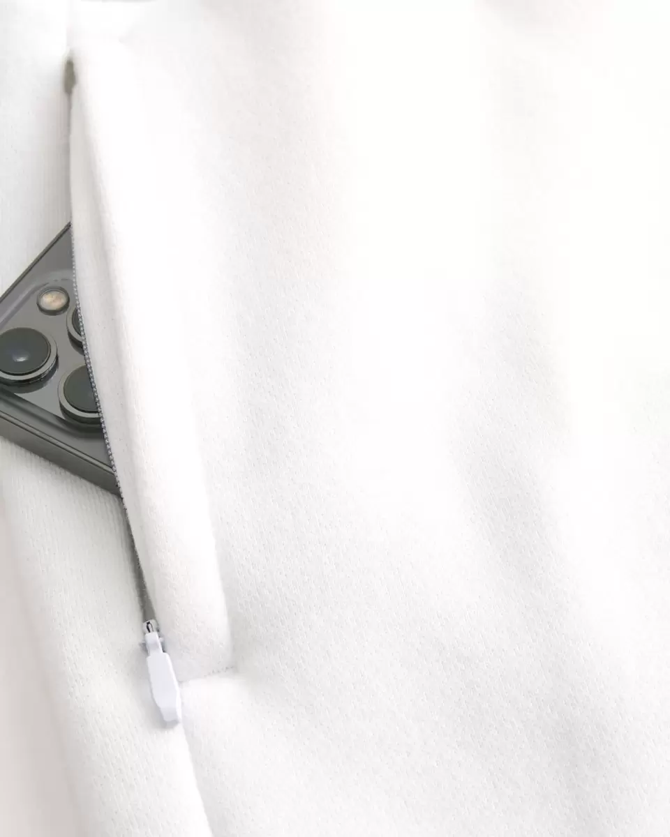 Supermiękkie, polarowe spodenki o długości za kolano i ściągaczu w pasie. Kieszenie, prawa kieszeń zapinana na zamek, haftowane logo. Importowane.