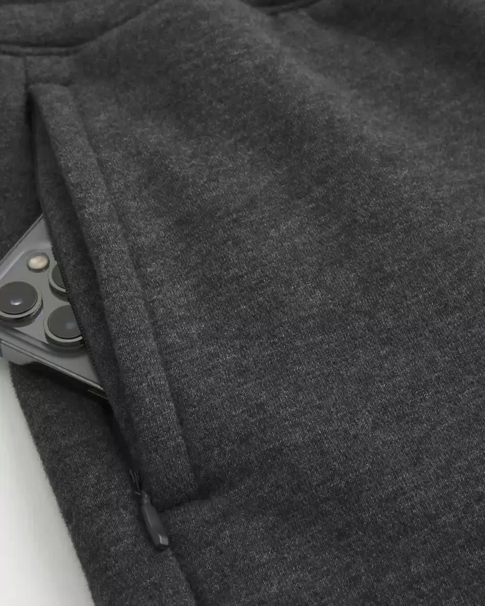 Supermiękkie, polarowe spodenki o długości za kolano, ze ściągaczem w pasie. Kieszenie, prawa kieszeń zapinana na zamek, haftowane logo.