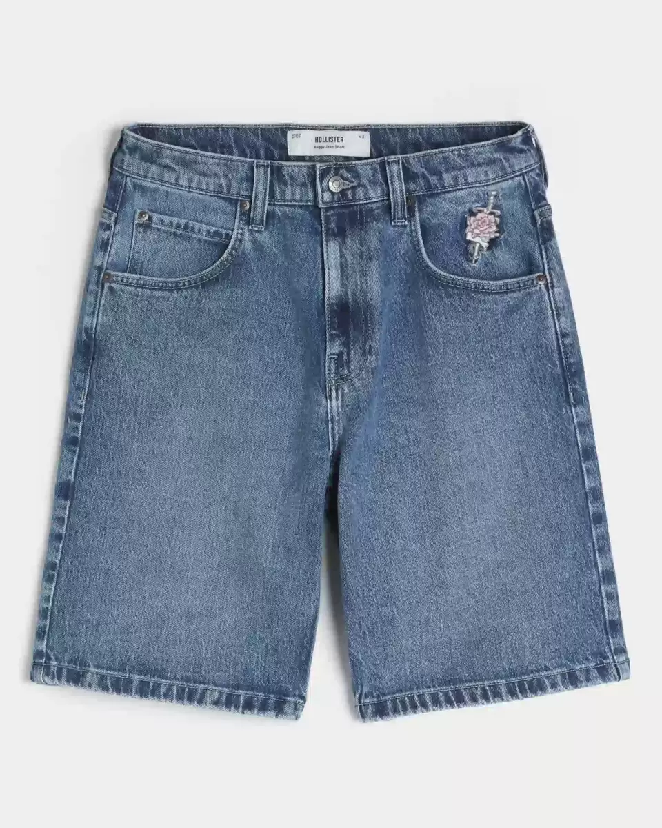 Wygodne szorty jeansowe z grafiką przedstawiającą różany miecz na lewej kieszeni. Luźne nogawki. Importowane.