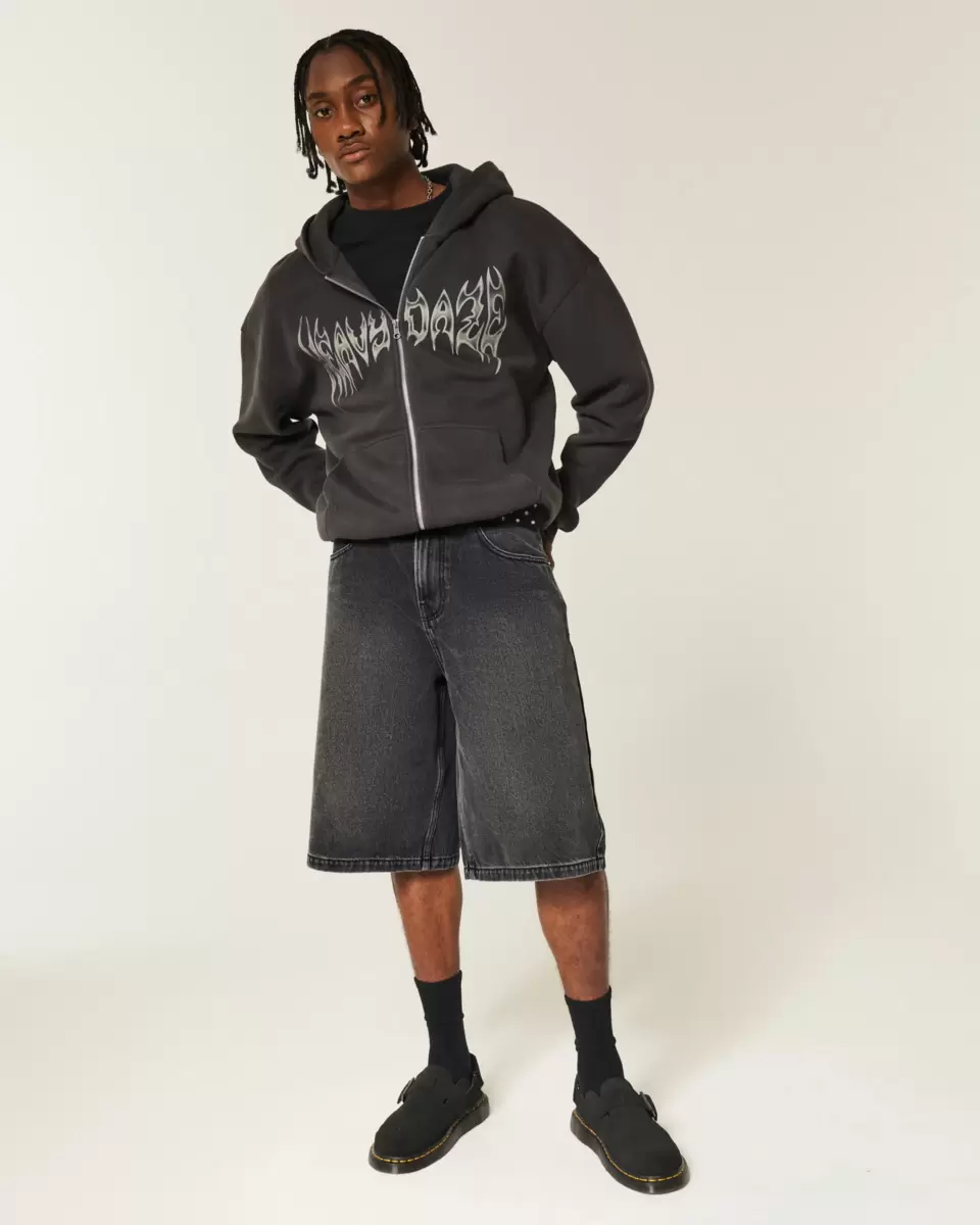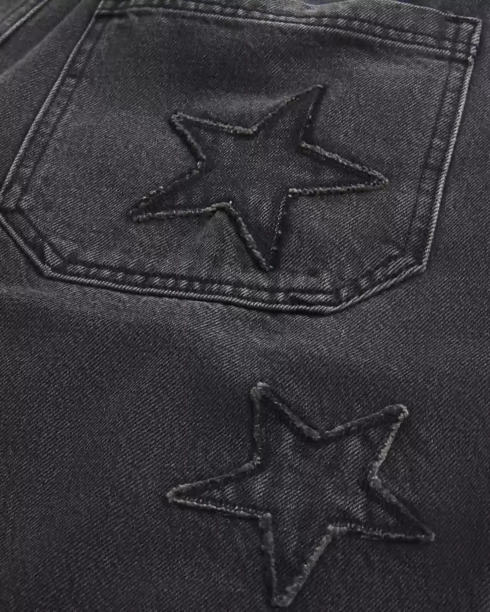Wygodne szorty jeansowe z bardzo luźnymi nogawkami i aplikacją w kształcie gwiazdy z tyłu. Kultowy fason z pięcioma kieszeniami. Importowane.