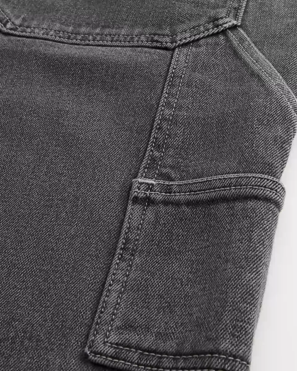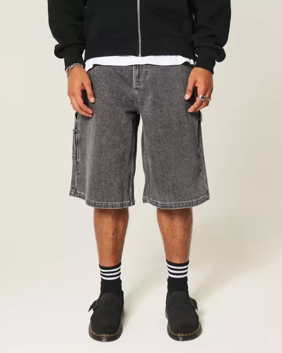 Wygodne szorty jeansowe z bardzo luźnymi nogawkami, grafiką płomieni z tyłu, szlufką na pasek po lewej stronie i dodatkowymi kieszeniami. Importowane.