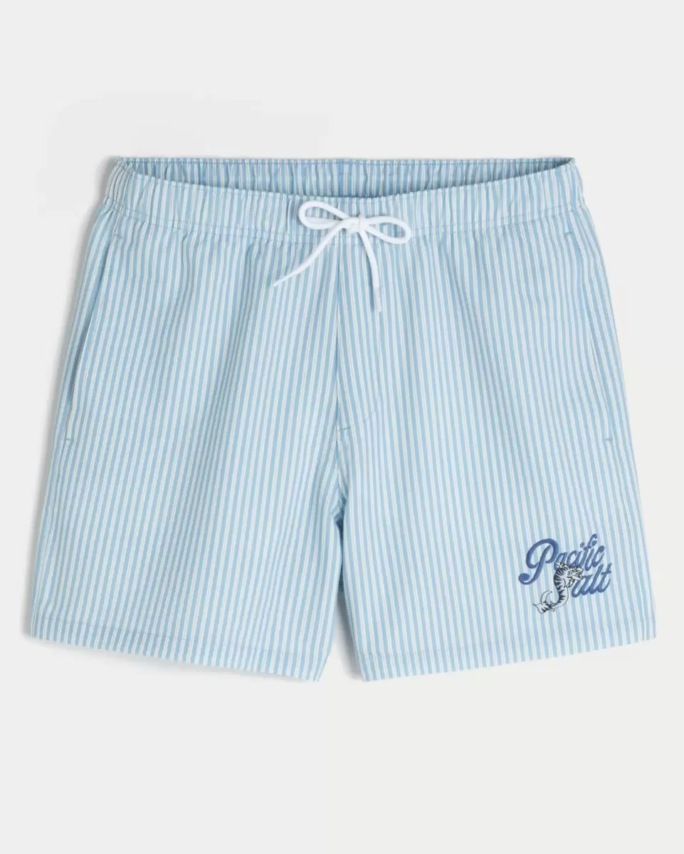 Krótsze kąpielówki sięgające do połowy uda. Wykonane z wygodnego, rozciągliwego w 4 kierunkach materiału seersucker i mają szew wewnętrzny o długości 14,8 cm. Kieszenie z przodu, podszewka z siateczki. Produkt importowany.